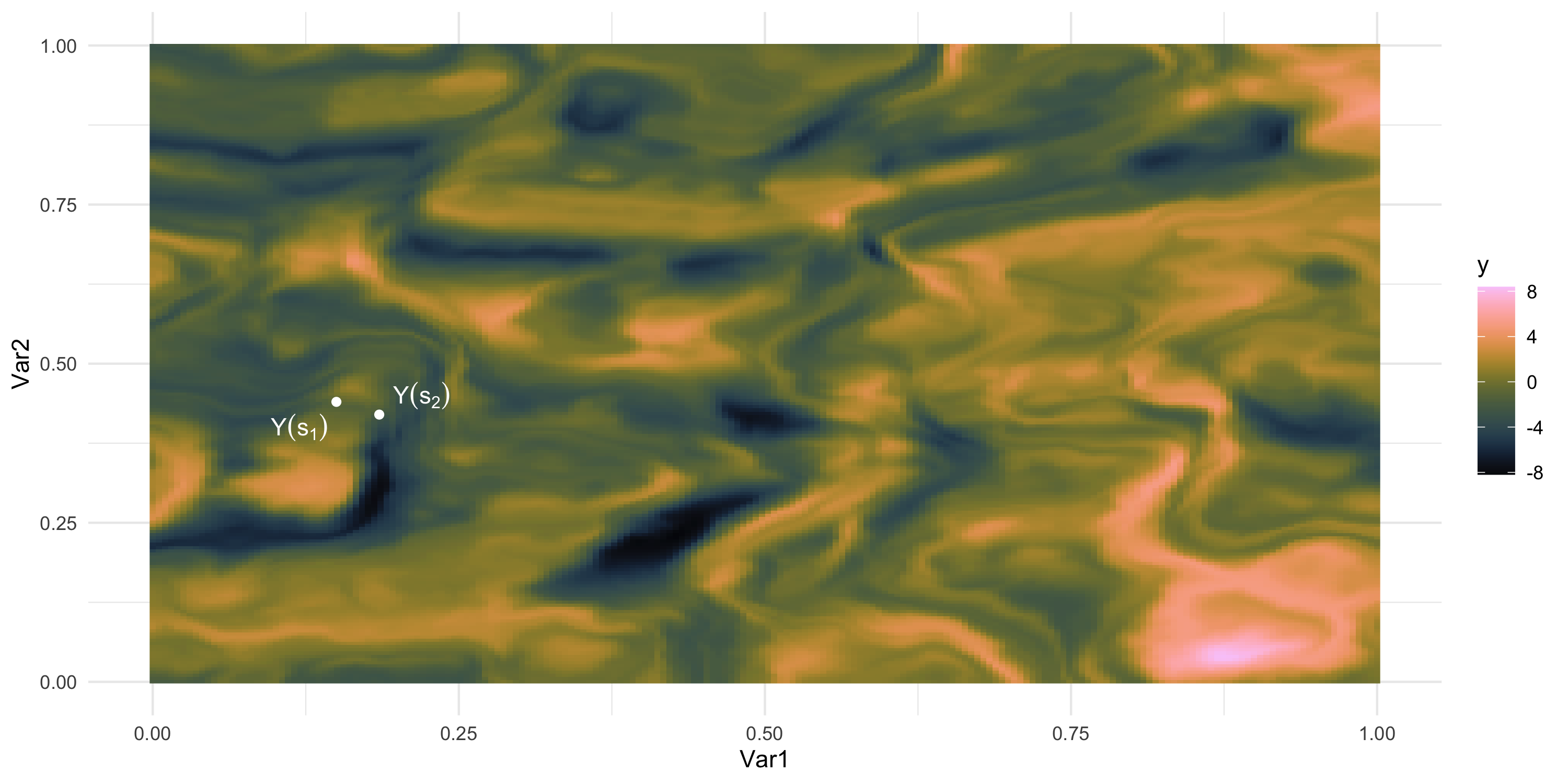 - Learn/estimate how Y(\cdot) changes in space. Model the spatial dependence