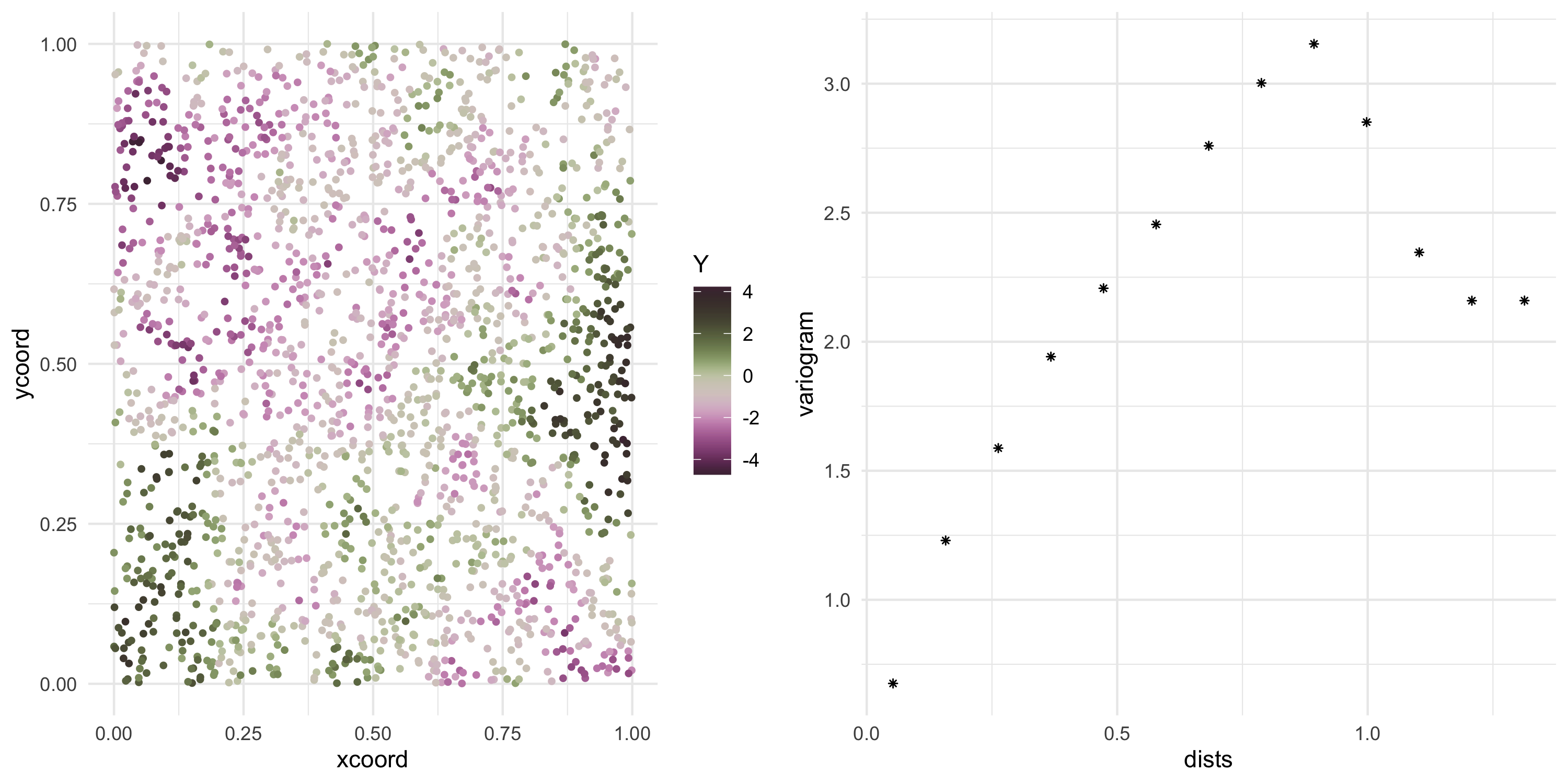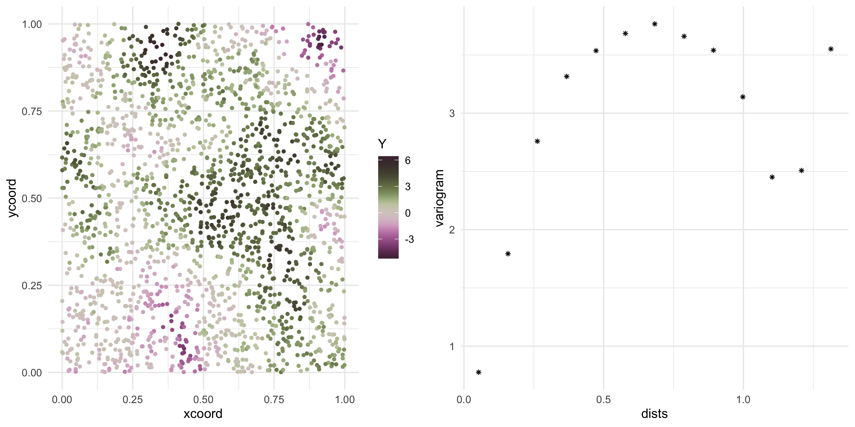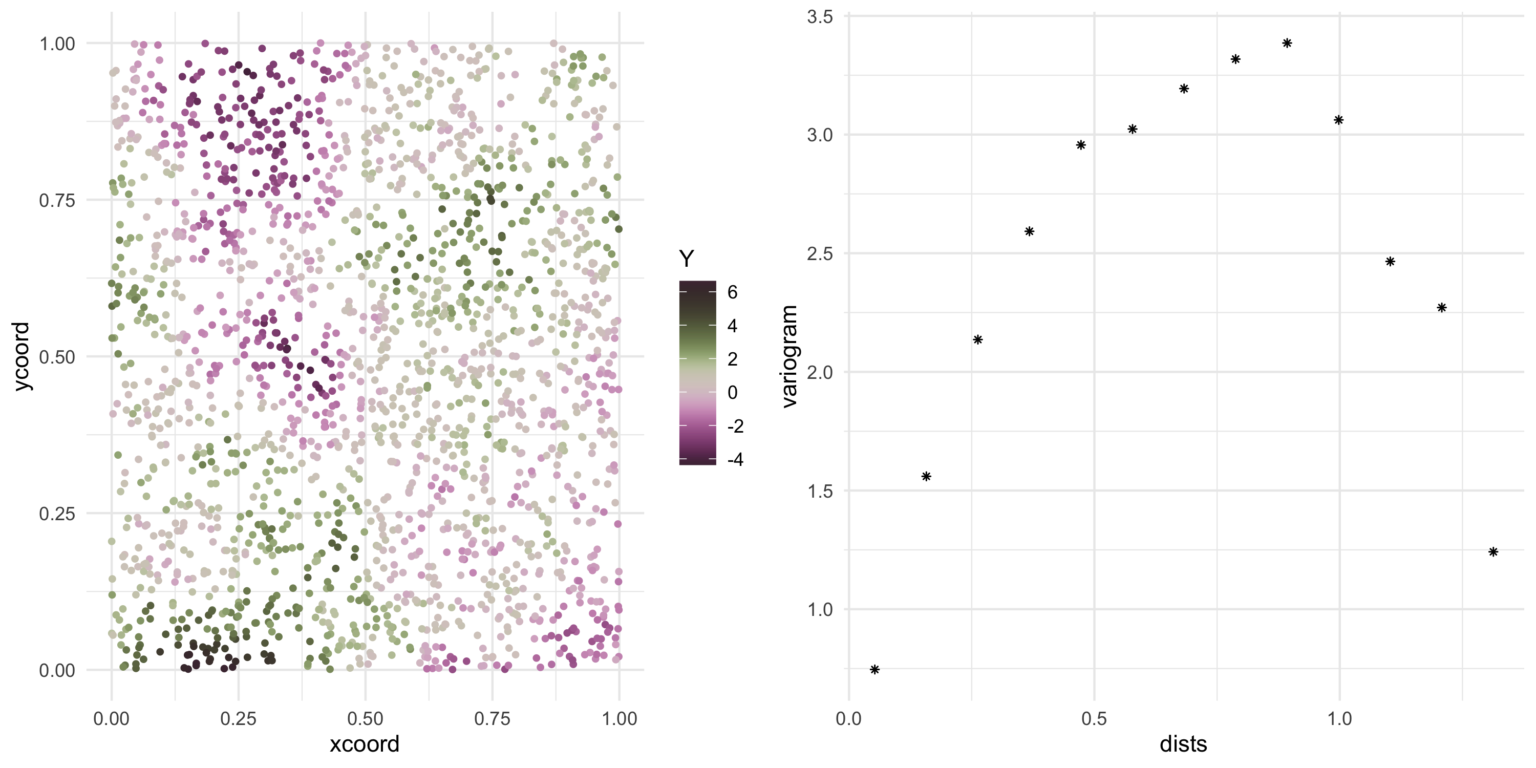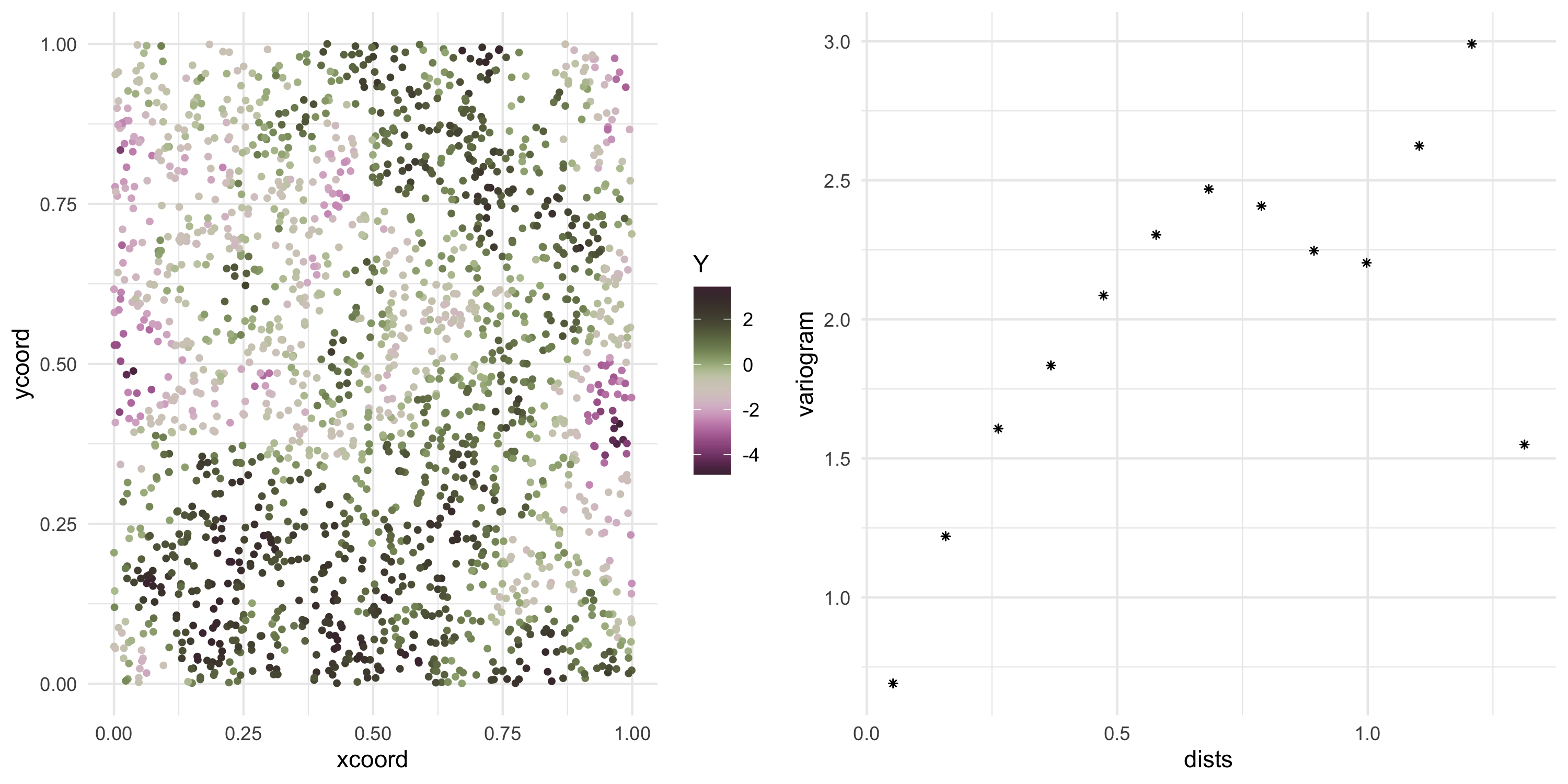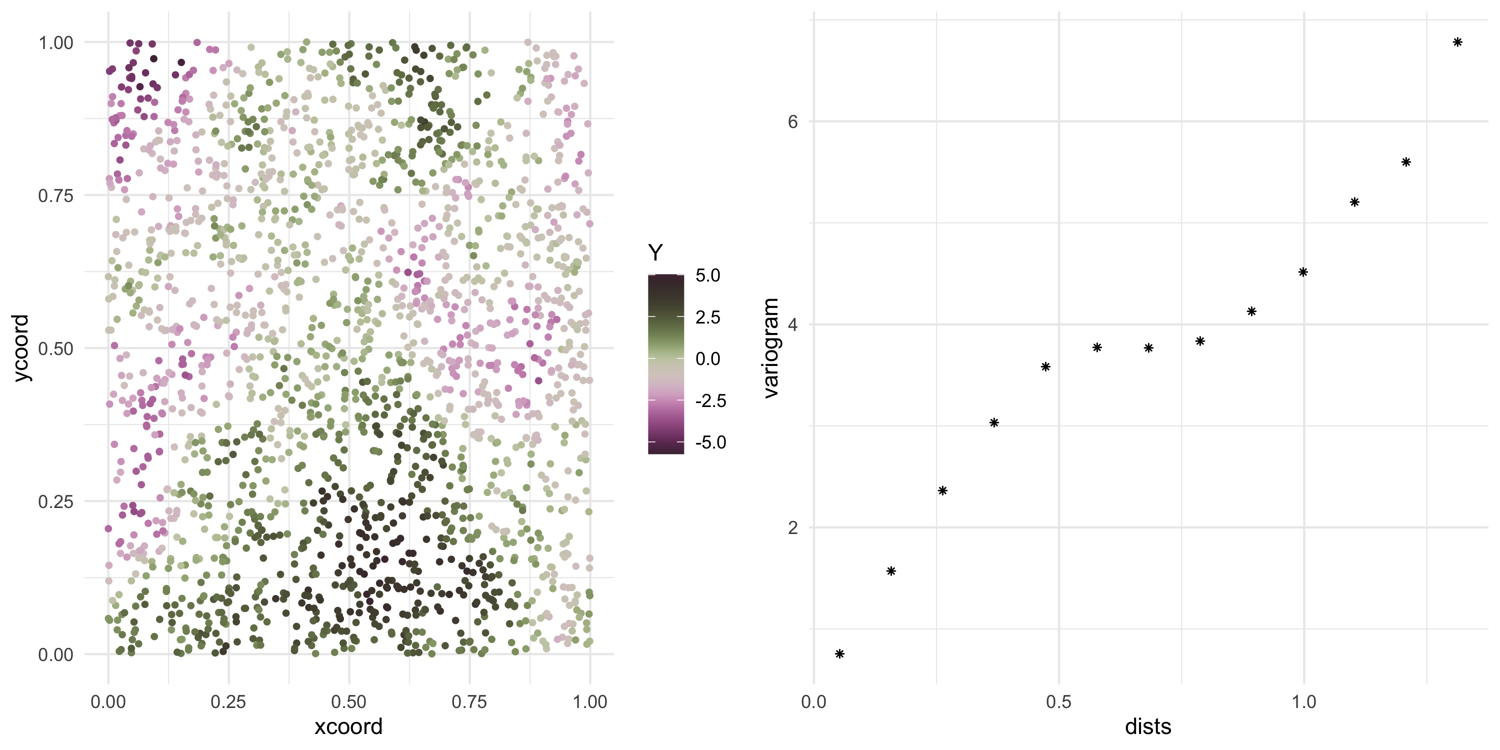 Cov(Y(s), Y(s')) = f(s, s') for some function f of our choice. In other words we model covariance uniquely via the random variables’ spatial locations.