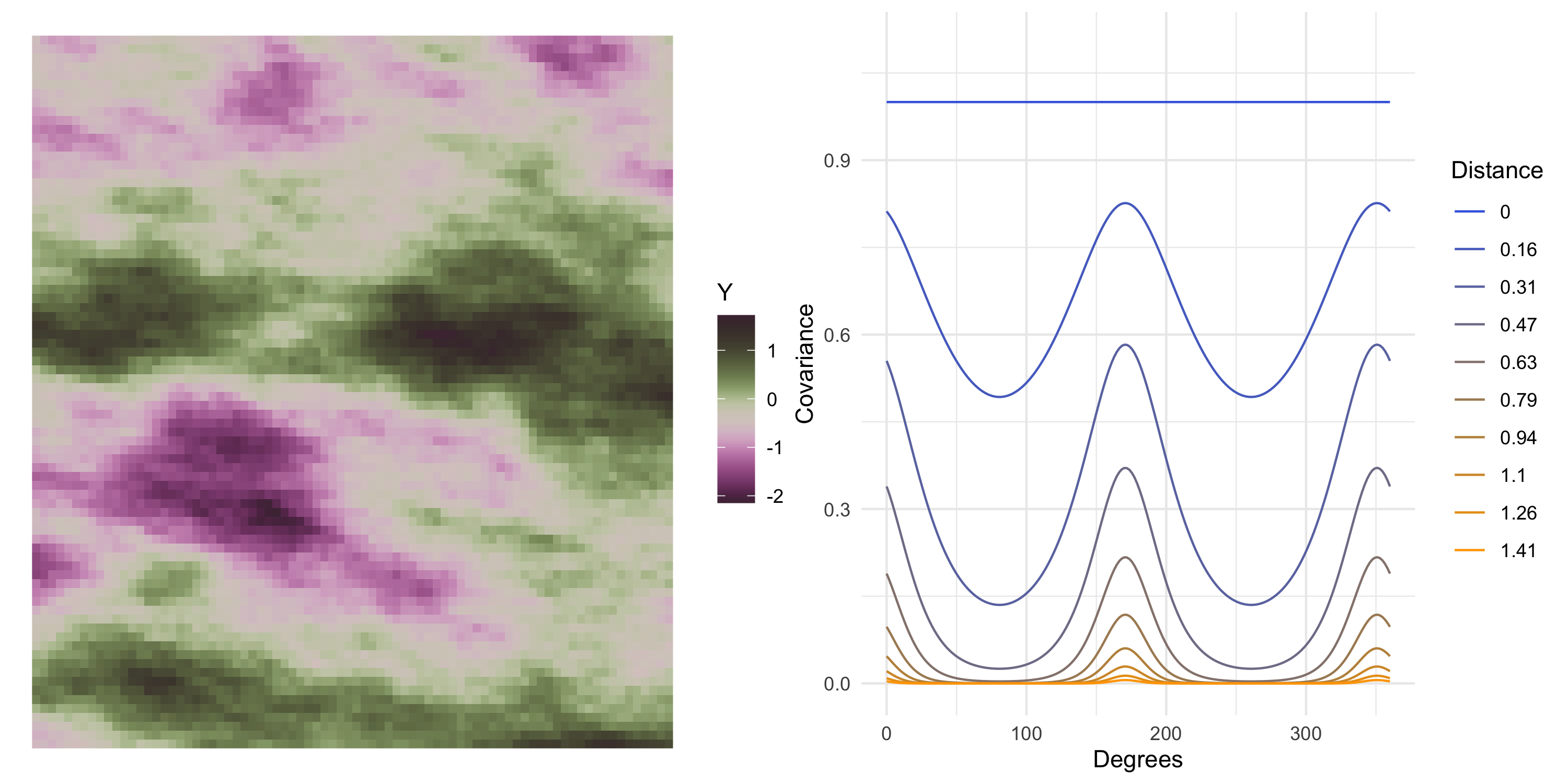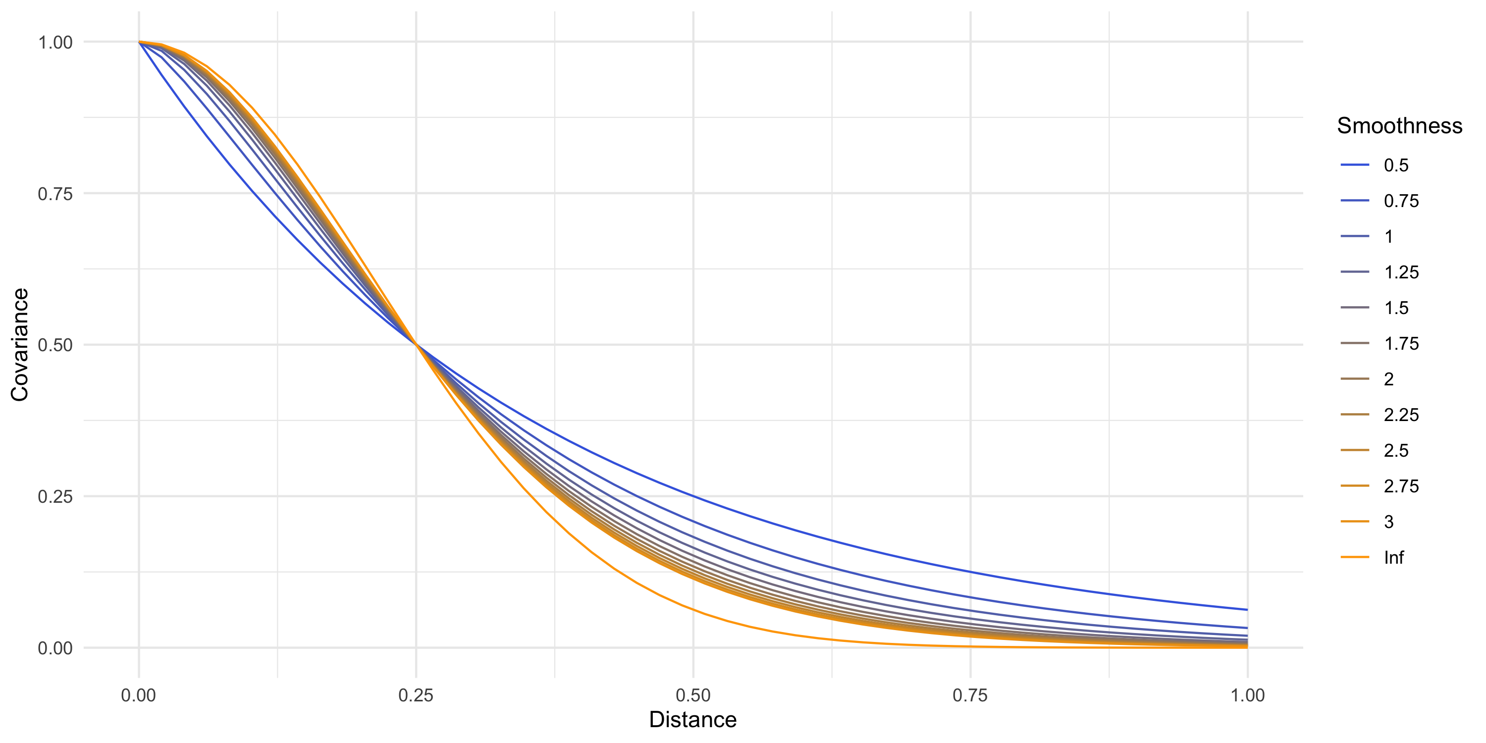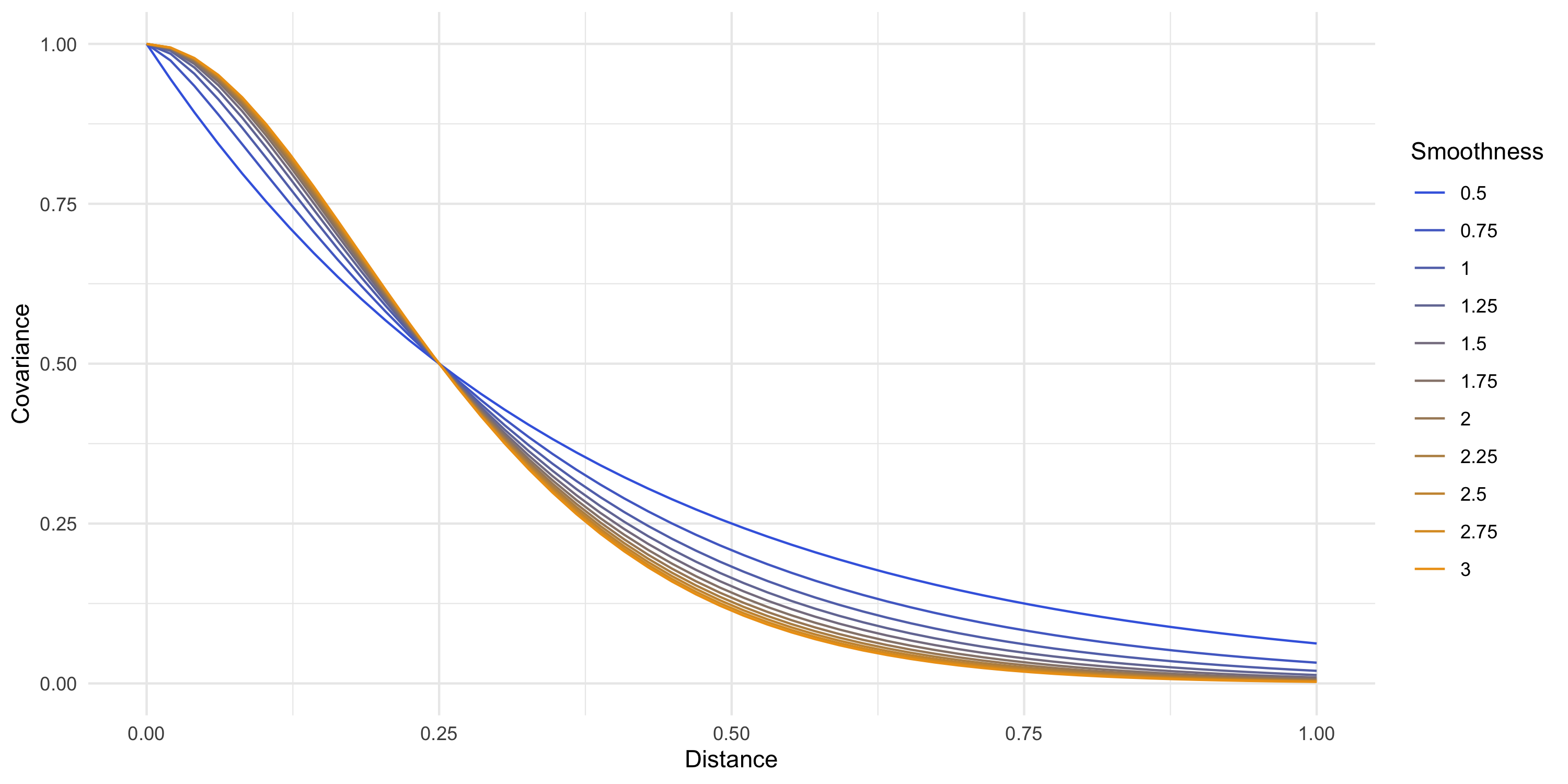 Covariance plot becomes more difficult to do the more the covariance function is complicated!