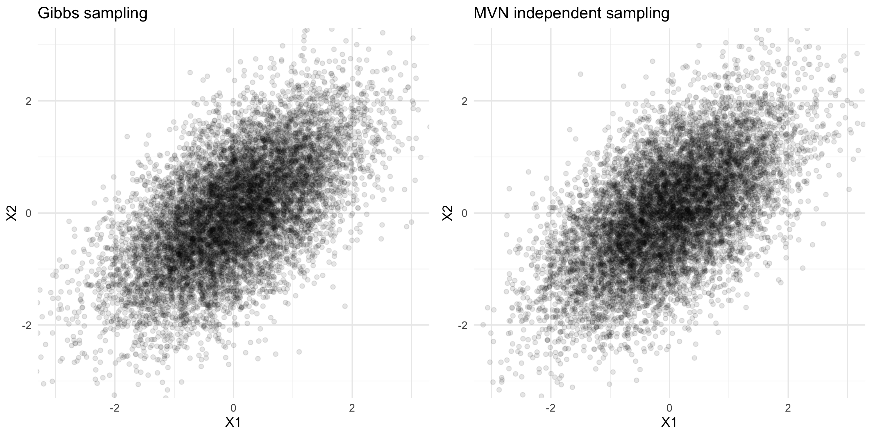 Recall with MCMC we get correlated samples from the joint posterior after reaching convergence