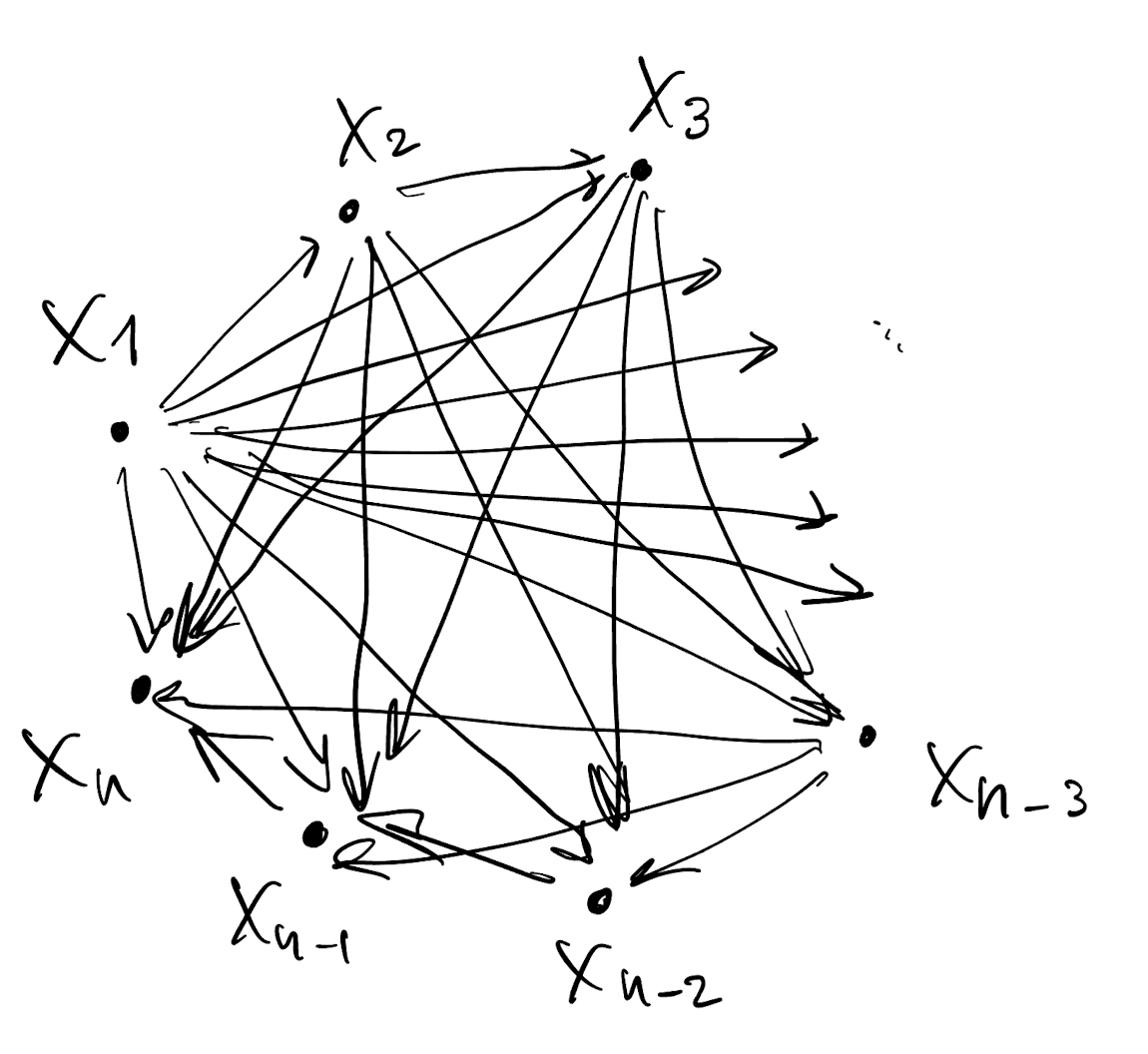 - Because p(X_1, \dots, X_n) = \prod_i^n p(X_i | X_{[i]}), we can draw a DAG according to which the joint density factorizes