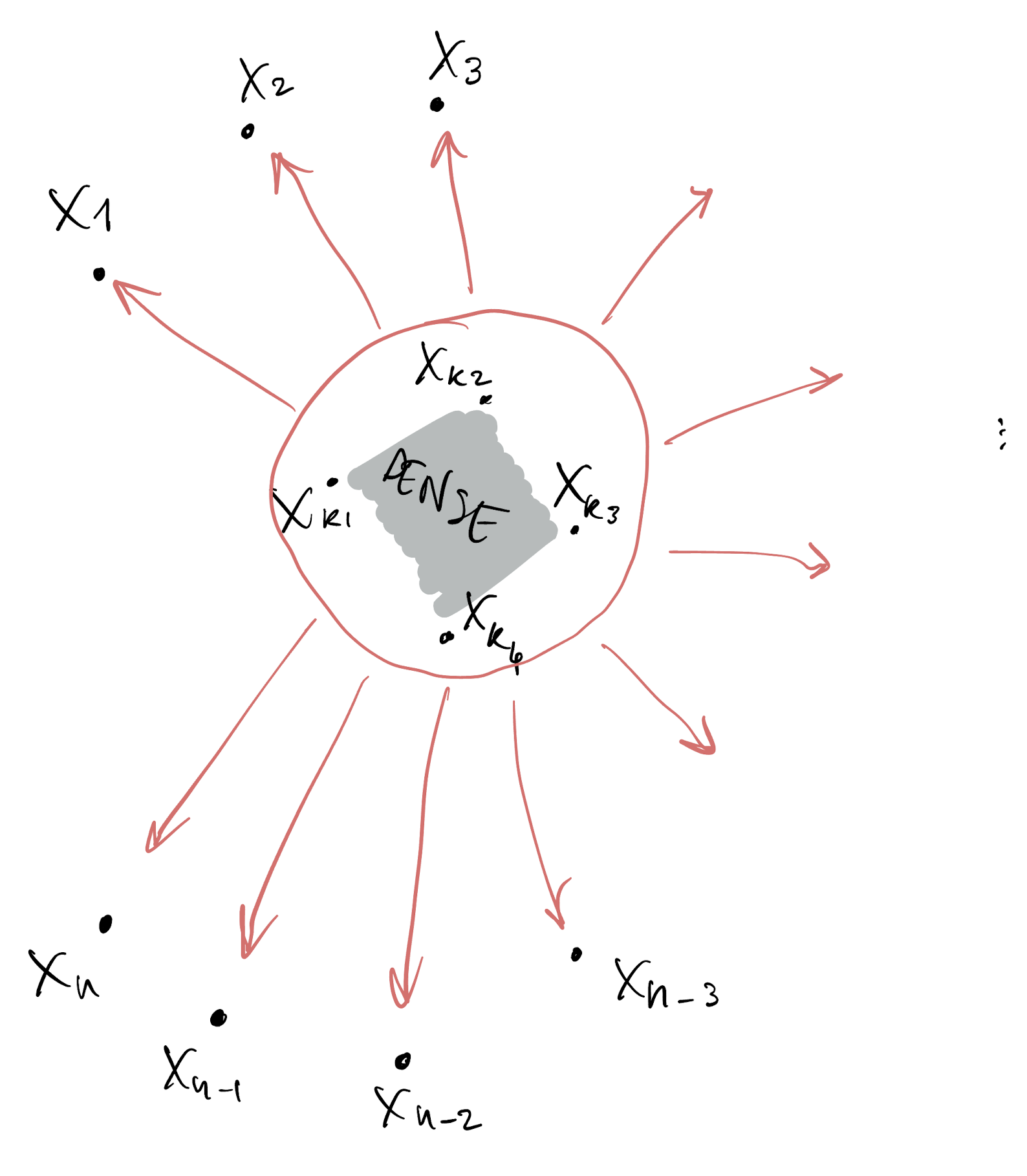 - Suppose from n variables we allow dense dependence for only k of them